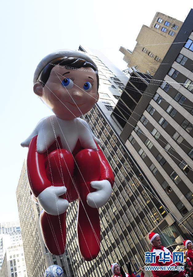 11月22日,在纽约曼哈顿举行的第86届梅西感恩节大游行上,“书架上的精灵”气球首次亮相。当天,一年一度的梅西感恩节大游行在纽约举行。梅西感恩节大游行由美国著名百货公司梅西百货主办,始于1924年,据梅西百货统计,今年有超过300万民众走上曼哈顿街头观看游行,同时有超过5000万观众通过电视转播感受这一年度盛事。新华社记者邓坚摄
