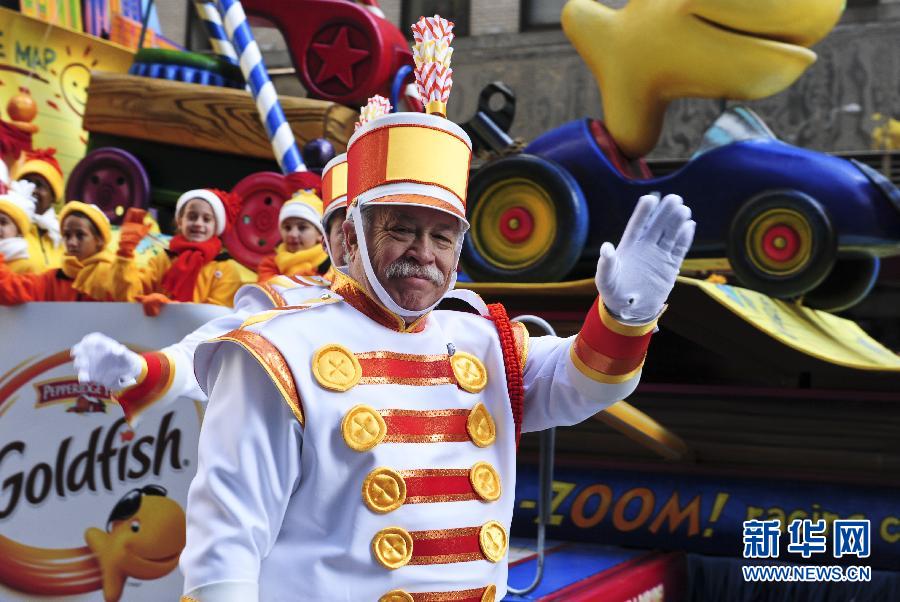 11月22日,在纽约曼哈顿举行的第86届梅西感恩节大游行上,一名参加游行的演员向路边的观众挥手。当天,一年一度的梅西感恩节大游行在纽约举行。梅西感恩节大游行由美国著名百货公司梅西百货主办,始于1924年,据梅西百货统计,今年有超过300万民众走上曼哈顿街头观看游行,同时有超过5000万观众通过电视转播感受这一年度盛事。新华社记者邓坚摄