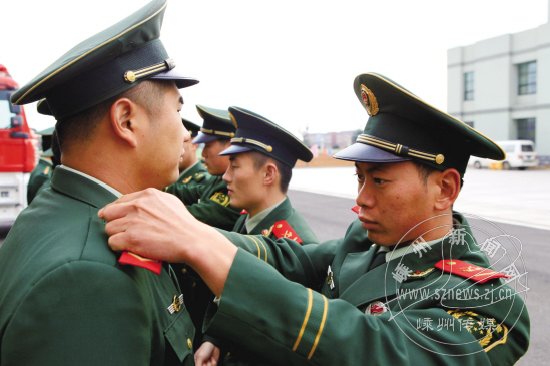 送战友,踏征程。11月24日上午,市消防大队举行老兵退伍卸衔仪式,4名老兵依依不舍地交接了水枪、战斗服、头盔等装备,并向自己征战多年的红色战车敬最后一个军礼,用最庄严的方式告别警营。图为战友为退伍老兵卸下肩章。