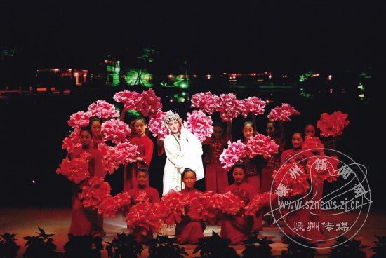 昨晚,一场名为“剡水绿韵”的文艺晚会在市越剧艺术学校问梅剧场上演,晚会用越剧、舞蹈和歌伴舞等多种形式,向来参加2012浙江(嵊州)森林旅游节暨绍兴市第四届森林休闲节的八方宾客展示嵊州的山水之美。省林业厅厅长楼国华,省妇联副主席张丽萍,省林业厅副厅长邢最荣,浙江农林大学党委副书记余杰,我市市委副书记、市长阮建尧,副市长俞忠毅等观看演出。