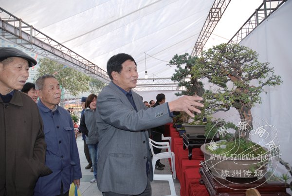 在竹编、根雕、花卉展区,摆放着各种类型不一的竹制品、根艺作品及造型奇特的花卉盆景,吸引众多市民拿出手机拍照。