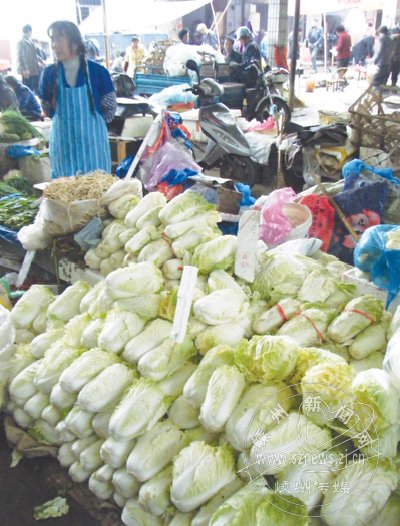 近段时间市场上大白菜的价格持续走低,并出现了滞销现象。“往年大白菜每斤的零售价在1.5元左右,而今年每斤售价基本在一元以内,大白菜价格越贱,越无人问津。”望着眼前一大堆正待销售的大白菜,位于江滨市场的摊主王桂娟无奈地摇摇头。
