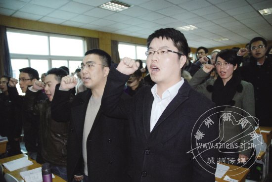 “坚决拥护中国共产党的领导,忠于宪法,忠于政府,忠于人民……”昨日下午,在市委党校举行的2012年初任公务员培训班结业仪式上,86名初任公务员庄严宣誓。据悉,为切实增强初任公务员的责任感、使命感和荣誉感,市人力社保局组织举办了为期半个月的培训班。在接受“第一课”后,这批公务员将走上各自的工作岗位。