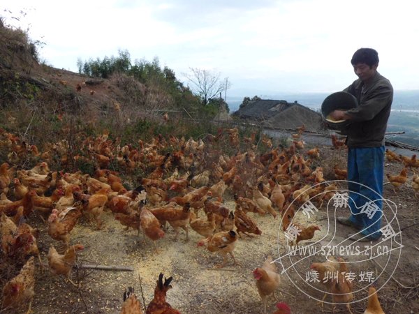 三界镇蒋镇村村民楼根华,今年在地处海拔400多米的高山上建起了养鸡场,分批循环放养土鸡。这些土鸡整天在山间树林中活动,吃的是野草、虫子,喂的是玉米、稻谷等粗杂粮,喝的是山泉水,肉质鲜美,再加上无污染、全生态,深受市场欢迎,每公斤能卖到56元的高价。