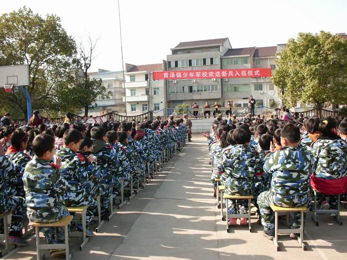 据悉黄泽镇少年军校成立于上世纪90年代(即黄泽镇中心小学),实行二块牌子一套班子的管理模式。为加强对青少年爱国主义教育,学校实行准军事化管理,并以年级为单位实行区队编制,以每周一定为准军事化日,定期军训磨练学生意志,从小培养军人气质并以此为平台开展特色教育。少年军校创办以来,曾有上百名少年军人走向队部军营,学校也多次获得省级以上的国防教育先进单位等荣誉。