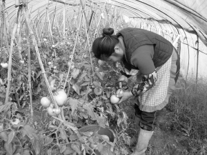 在嵊州市石璜镇向阳村,魏灿祥种植的1.7亩大棚番茄水淋淋、红彤彤的十分喜人。据正在采摘番茄的魏灿祥妻子王玉荣介绍,她家的番茄从11月下旬起投放市场,而本地无公害番茄秋天种植、冬天上市的很少见,因此很受市民青睐。目前,番茄每公斤批发价已达5元以上,亩产值在3万元左右。