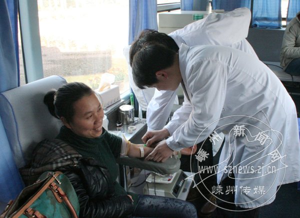 近日,嵊州中学20多名教师报名参加了在学校广场进行的无偿献血活动,以自己的实际行动演绎了一曲“爱的奉献”之歌。