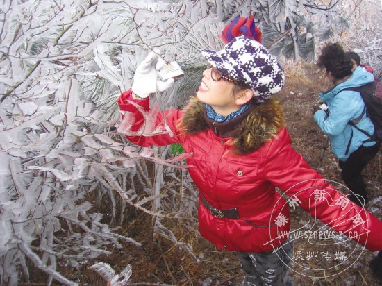 昨日,一队驴友经过下王镇的一处高山,对山上的雾凇冰凌美景陶醉流连。22日,一股强冷空气侵袭我国,多地出现寒潮天气,伴随大风而来的是急剧降温,我市昨天最低温度零下2度,山区更低。对频频出现的低温天气,各地在生产生活上要做好防御准备。