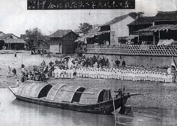 1924年5月1日,麦斐生从嵊县返程。照片上的字体为:欢送麦校长第二次荣旋纪念。