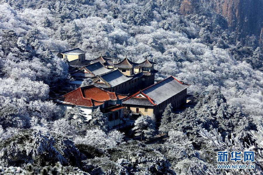 这是12月23日在安徽黄山风景区拍摄的雪凇美景。当日,雪后的安徽黄山风景区出现罕见的大面积雪凇美景,整个黄山风景区银装素裹,晶莹剔透,玉树琼枝,令人叹为观止。新华社发(施广德摄)