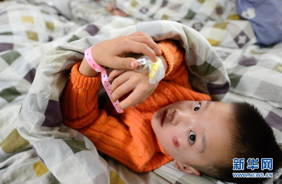 事故中受伤的幼儿在贵溪市人民医院接受治疗(12月24日摄)。12月24日9时许,贵溪市滨江镇洪塘村一载有15名幼儿园学生的面包车侧翻坠入水塘,当场致3人死亡,12人送医抢救,其中8名儿童抢救无效死亡。目前,此次事故已致11名儿童遇难,4名幸存儿童仍在市人民医院接受治疗,已脱离生命危险。据介绍,事发水塘水深达3至4米,面积有10余亩。事故车上除司机外还有一名老师。新华社记者周科摄