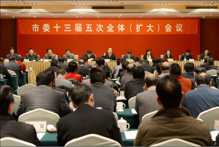1月11日,市委召开十三届五次全体(扩大)会议,深入学习贯彻党的十八大、中央经济工作会议以及省、绍兴市全委会精神,回顾总结2012年工作,研究部署2013年工作任务,动员全市上下进一步坚定信心,真抓实干,全力开创跨越发展新局面。