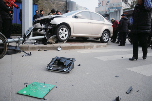 去年12月26日,本网发布《油门当刹车 一辆越野车失控冲进花坛 》一文,报道了25日凌晨发生的一起车祸:一辆越野车因为避让乱窜的电动车,误将油门当刹车,失控冲入花坛。昨日发生的车祸,又因电动车乱窜而起。