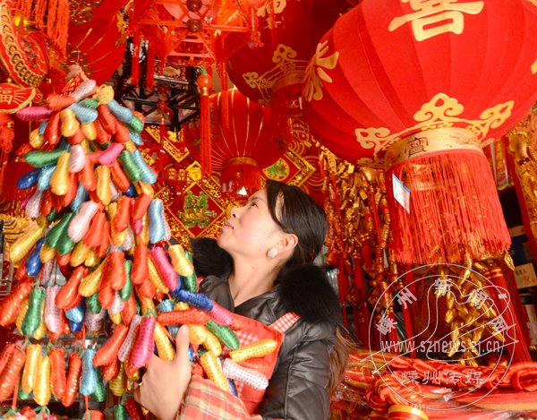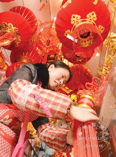 随着春节临近,江滨西路上几家商店里挂满了灯笼、对联、中国结等饰品,红艳艳的色彩让人感受到年味渐渐地浓了。据商家介绍,与生肖蛇相关的主题挂件、卡通贴画等都销售火爆。