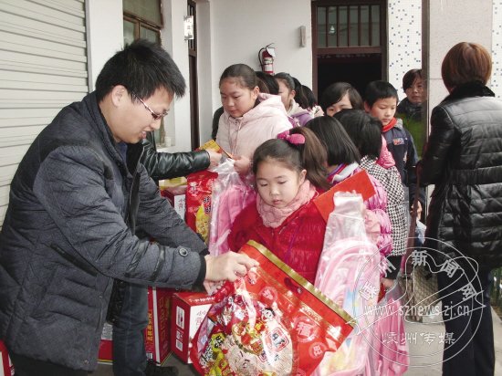 在黄泽镇关工委、镇“学雷锋爱心小组”的牵线搭桥下,周军伟、沈春燕两位家电企业主向黄泽镇中小学的贫困学生“送温暖、献爱心”仪式举行,来自全镇的50名中小学生得到了总价值为1.65万元的爱心资助。