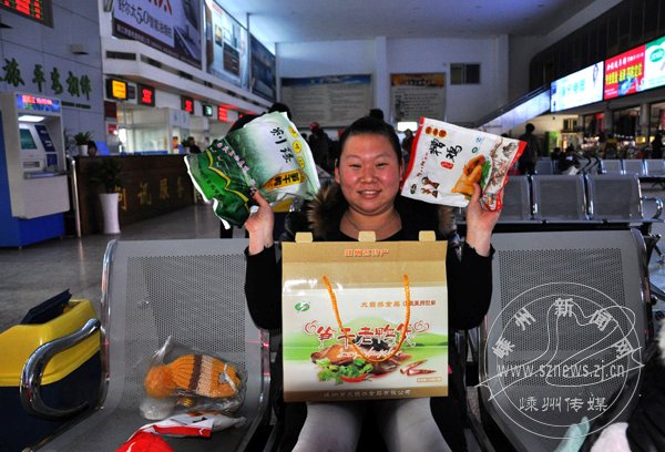 昨日,在市客运中心的候车大厅,记者碰到的第一个带年货回家的年轻人是侯先生,过完年27岁,来嵊州工作已有6年之久。见到他时,最引人注目的是那红红的4个大行李袋,还有两大箱榨面。他说:“每年回家总要带些榨面给母亲,北方没有,她稀罕。”他说,以前回河南老家,很少带礼物回家。“那时还是一个机械厂的学徒,舍不得多花一分钱,父母也不让带东西,怕我累坏了,只催着赶紧回家。”