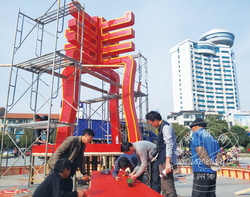 昨日,市文化广场一个“春”字矗立而起。据了解,为丰富人民群众精神文化生活,营造蛇年春节喜庆气氛,从昨日开始,市园林管理处将在市区6个主要地段布置鲜花及小品,布置主题包括“春到嵊州”“春风和煦”“嵊州处处春色”“富贵蛇年”“开春丰盈”“蛇娃闹春”等,预计到2月5日布置完毕。
