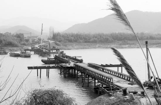 正在建设的大桥,即将取代渡口(王丽红摄)