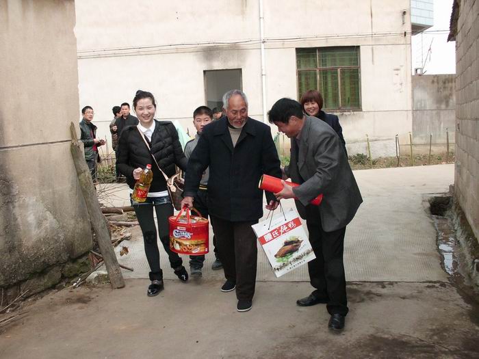 2月1日上午,正值2013年新春佳节将要来临之际,由黄泽镇学雷锋“爱心小组”牵头,联手社会贤人、家电老板沈春燕、周军伟、李立刚等三人出资15000元,带着慰问品、慰问金,驱车前往该镇老革命根据地兰洲村慰问曾在49年前就参加革命工作的老同志及顺富、光明、七一等村的贫困户共计14人。