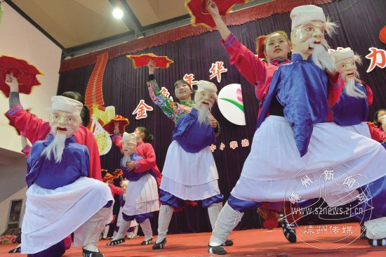 据悉,为深入挖掘和弘扬优秀传统文化,省委宣传部、省委外宣办(网信办)、省文化厅、省广电集团联合开展了“人文浙江·传承非遗”网络寻访活动,并将寻访到的优秀项目汇编成一台综合晚会,于今日在浙江广电集团演播厅展演。图为2月2日演员们在黄泽中学排练“哑背疯”舞蹈。