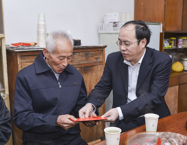 1月30日下午,市领导陶关锋、孙海荣、郑法根、董友庆先后慰问了黄泽镇敬老院老人,唐叶村退职老干部唐焕钰,甘霖镇上沙地村低收入农户支巧明,蛟镇村退职老干部金德苗,鼓励他们克服困难,安心生活,并祝他们过一个欢乐、祥和的新春佳节。