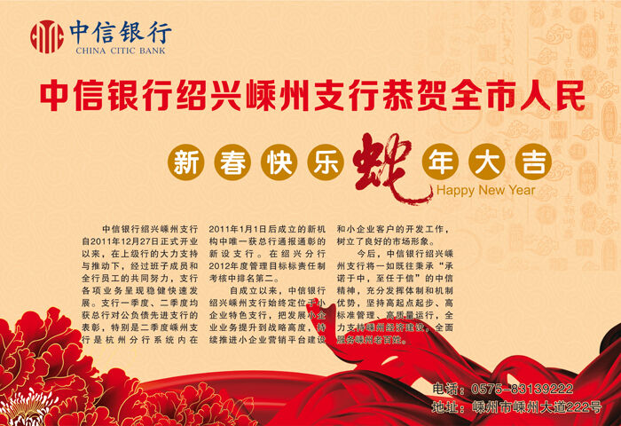 中信银行绍兴嵊州支行恭贺全市人民新春快乐