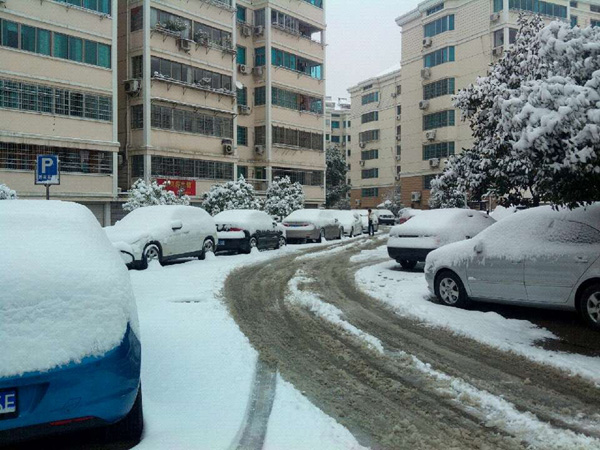 上午7时,市气象台发布道路结冰橙色预警:昨夜我市普遍出现中到大雪,局部暴雪,道路积雪结冰严重,对交通、农业等有较大影响,下雪还在继续,注意防范。
