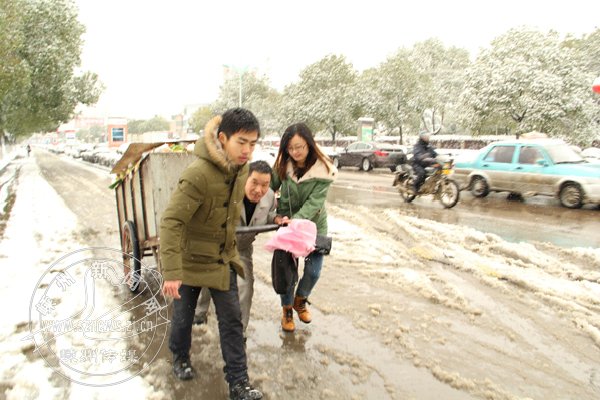 大雪中,我们见到剡城最美情侣。中午11点,市民陈黎亚到客运中心接刚从武汉回家过年的男朋友。在等公交车的时候,陈黎亚看到一名工人正努力地拉一车垃圾,但是一动不动。于是她就拉着男朋友,一起为这位嵊州宾馆的张师傅拉车,一路拉到市环卫处城北垃圾处理站为止。