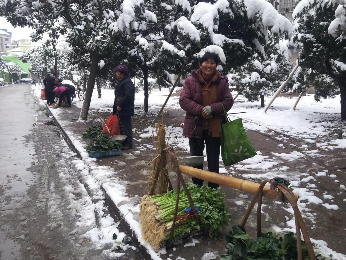 2月9日是除夕,大家都忙着回家过年,但一些卖蔬菜的农民还站在寒风里,等待着市民购买。