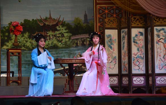 越音袅袅、掌声阵阵,为丰富村民的业余生活,嵊州市越剧一团在三江街道隔水村进行文艺演出,此次演出吸引了周边广大村民观看,让乡亲们在家门口欣赏到了原汁原味的越剧大戏。图为演出现场。