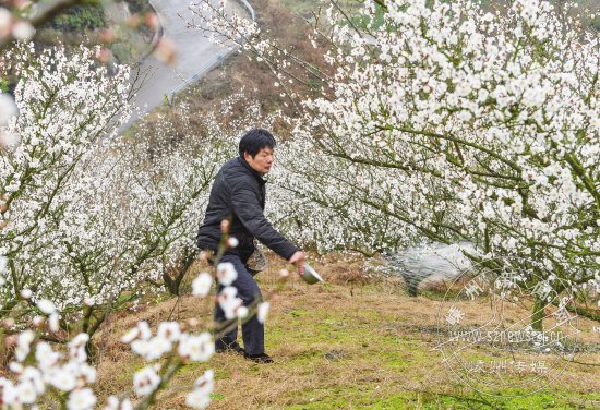 近日,里南乡大青梅花已开始绽放。作为我市大青梅主产地之一,目前里南乡大青梅种植面积已达3000亩左右,年产大青梅约200吨。图为村民正在给大青梅树施肥。