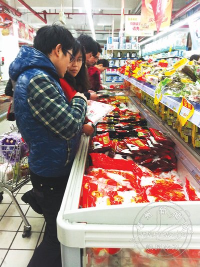 昨日是元宵节,市区各大超市纷纷将汤圆摆到显眼的位置,口味各异的汤圆、酒酿圆子吸引众多市民选购。