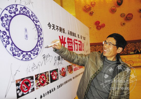 “今天不剩饭,从我做起”。昨日下午,参加市政协十四届二次会议的委员向大会组委会报到。在报到现场,一块宣传“光盘”行动的宣传板吸引了政协委员的注意,大家纷纷在宣传板上签下名字,共同参与“光盘”行动。