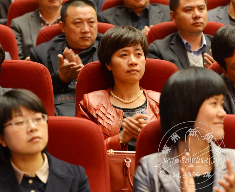 昨日下午,中国人民政治协商会议嵊州市第十四届委员会第二次会议圆满完成各项议程后在市越剧艺术中心胜利闭幕。图为闭幕式现场。