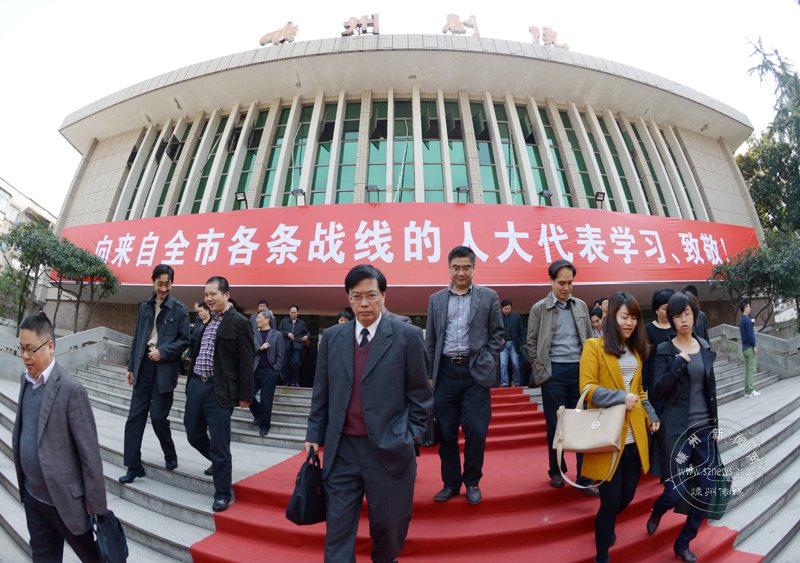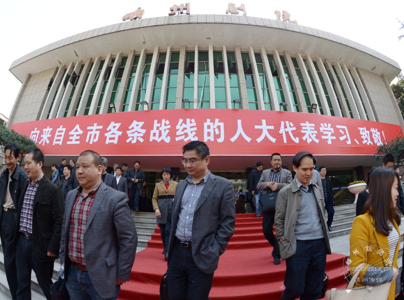 3月8日上午,市十五届人大二次会议圆满完成各项议程后,在嵊州剧院胜利闭幕。图为代表满怀信心走出会场。