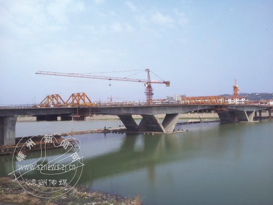 南马路桥主桥已合龙,南引桥也基本完成,已完成总工程量的80%以上。预计到6月份,将完成桥面工程。图为初展雄姿的南马路桥。