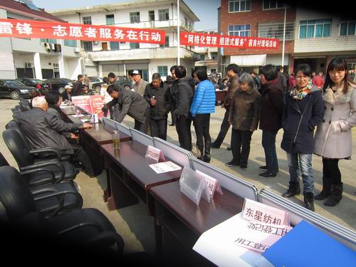 “网格化管理,组团式服务”是以为民、便民、惠民为根本的基层社会服务管理模式创新。为了让老百姓更加了解“网格化管理、组团式服务”的工作内容,3月12日上午,黄泽镇组织团委、计生、司法、工办、农办以及工商所、检察室、卫生院等部门在前良村广场开展了“网格化管理、组团式服务”现场活动。活动共设立10处咨询服务台,为群众提供了消费维权、医疗卫生、家政服务、法律咨询、就业招聘等多项特色服务内容,群众对此纷纷叫好,表示这种面对面的服务政府以后应该多多举办。