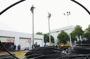 3月11日上午,在嵊州市供电局组织的外包施工队人员技能测试现场,来自该局安全监察质量部和运维检修部的监考员,严格对照安装、拆卸横担评分标准,对考生在规定20分钟时间内的技能操作情况进行现场打分。