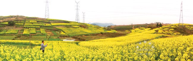 阳春三月,我市4.5万亩的油菜花竞相开放。站在山丘上遥望,金黄的菜花铺满大地,显得格外抢眼,吸引众多游客和摄影爱好者前去欣赏拍照,感受乡村风情,尽享春游乐趣。图为鹿山街道中碧溪村四十亩自然村的油菜花田。