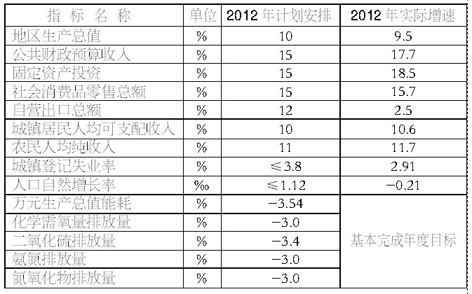 表1 2012年国民经济和社会发展计划主要指标完成情况