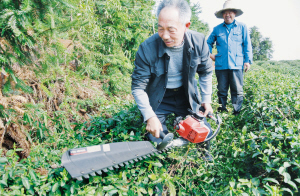 前几天冷空气突然来到,山区有霜冻,让嵊州市部分产区的乌牛早、龙井43等早茶遭受冻害。昨日,在该市鹿山街道新大洋村茶园里,茶农正在积极补救,采用春伐、整枝等方法,剪去冻伤的茶枝,让茶树重新生长。