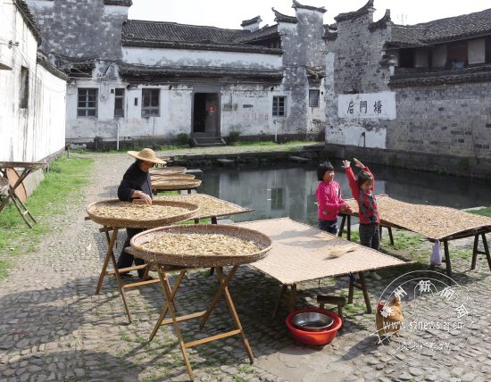 这几天阳光灿烂,正是晒笋干菜的好时节。在农村,随处可见那一竹匾一竹匾的笋干菜,成了春天里一道独特的风景。图为崇仁古镇里的居民正在晒制笋干菜。