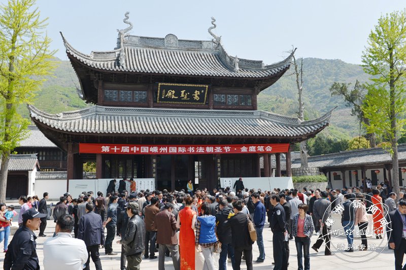江南四月,群贤毕至。昨日上午,由浙江省书法家协会、嵊州市人民政府联合主办的第十届中国嵊州国际书法朝圣节在书圣墓前举行朝圣仪式,纪念王羲之这位名冠古今、誉播海内的中华书圣。图为金庭笔会现场。 记者 马玉龙 摄