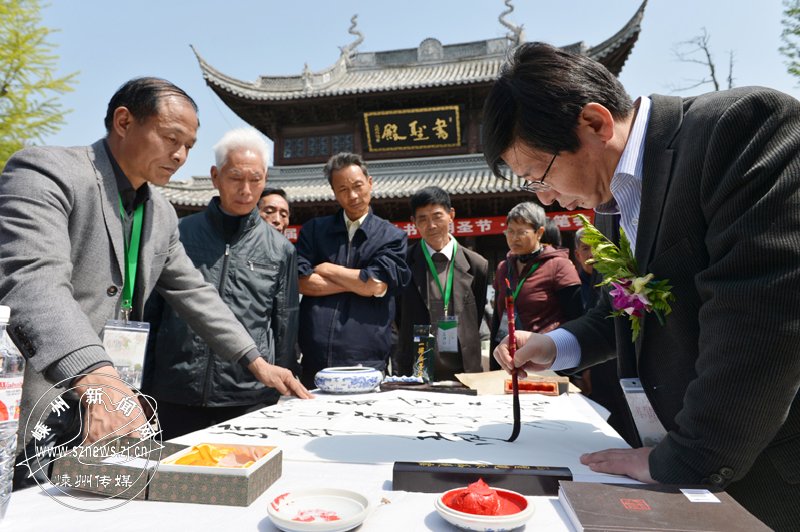 江南四月,群贤毕至。昨日上午,由浙江省书法家协会、嵊州市人民政府联合主办的第十届中国嵊州国际书法朝圣节在书圣墓前举行朝圣仪式,纪念王羲之这位名冠古今、誉播海内的中华书圣。图为金庭笔会现场。   记者 马玉龙 摄