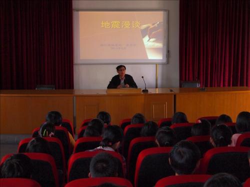 省地震局震防处的童志怡博士还为该校学生生作了《地震漫谈》的科普讲座,童博士从感知地震、传说地震、解读地震、应对地震和寄语地震等五个方面,通过与学生互动的方式深入浅出地阐述了关于地震方面的知识,告诉师生在面对地震时应持的态度和救助的方式。学校对讲座进行了全程录像,作为防震减灾科普室的资料。