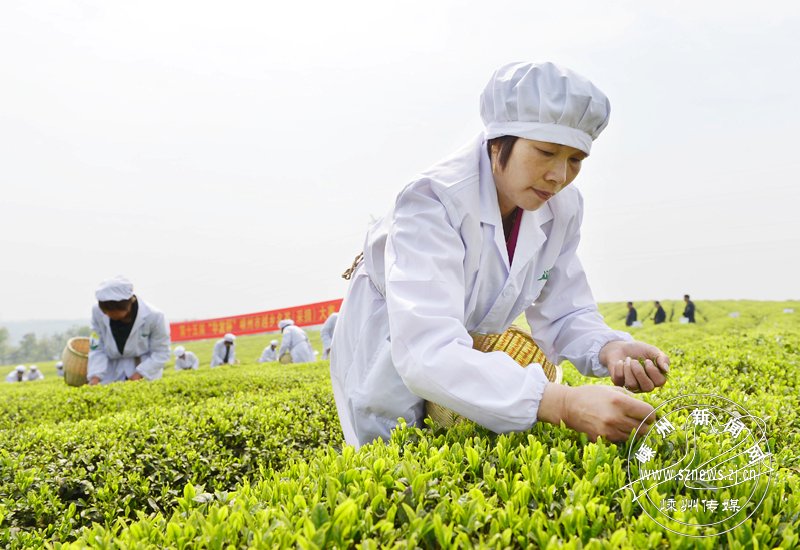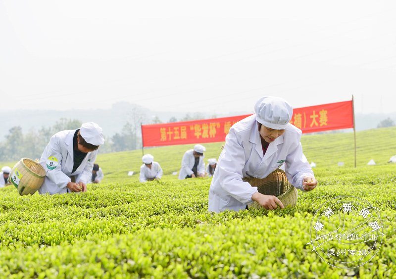 千山万壑育佳茗,“越乡龙井”香天下。4月12日,已坚持了15年的“华发杯”越乡名茶大赛在茶叶城举行。今年的比赛分为“十大采摘能手”、“十大炒制能手”和“十大名茶评比”三部分同时进行,来自全市各产茶乡镇的21名采茶工,22名炒制高手以及我市部分茶叶经营户参加比赛。图为采摘大赛现场。 马玉龙摄