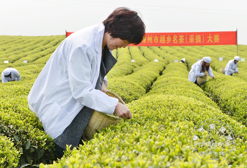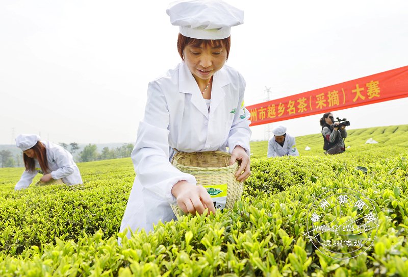 千山万壑育佳茗,“越乡龙井”香天下。4月12日,已坚持了15年的“华发杯”越乡名茶大赛在茶叶城举行。今年的比赛分为“十大采摘能手”、“十大炒制能手”和“十大名茶评比”三部分同时进行,来自全市各产茶乡镇的21名采茶工,22名炒制高手以及我市部分茶叶经营户参加比赛。图为采摘大赛现场。 马玉龙摄