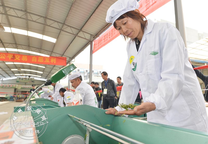 千山万壑育佳茗,“越乡龙井”香天下。4月12日,已坚持了15年的“华发杯”越乡名茶大赛在茶叶城举行。今年的比赛分为“十大采摘能手”、“十大炒制能手”和“十大名茶评比”三部分同时进行,来自全市各产茶乡镇的21名采茶工,22名炒制高手以及我市部分茶叶经营户参加比赛。图为炒制大赛现场。 马玉龙摄