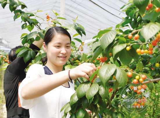 近日,我市6000亩樱桃陆续开摘,主要分布于甘霖、崇仁、金庭等地。受气候影响,今年我市樱桃上市时间较去年提早约5—7天,价格每公斤约60元。图为在嵊州市两头门水果专业合作社的樱桃园里的采摘现场。