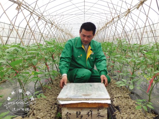 现在正是大棚番茄的授粉季节,记者在市现代新有机农业园看到,工作人员正在20多个番茄大棚内放养蜂群。 采用蜜蜂授粉技术,可提高番茄结果率与品质,又可实现无公害生产,使棚内番茄果实丰满产量增。